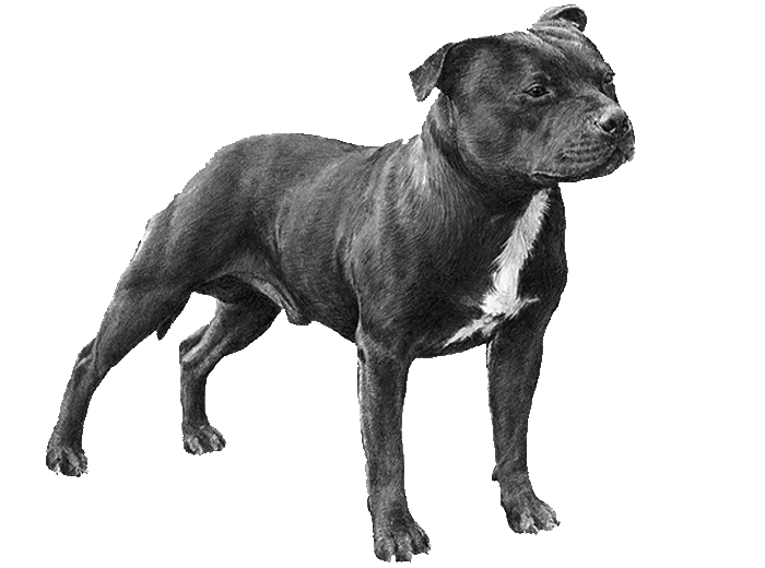 GENERAL APPEARANCE : The Staffordshire Terrier should give the impression of great strength for his size; a well put together dog, muscular, but agile and graceful, keenly alive to his surroundings. He should be stocky, not long-legged or racy in outline. His courage is proverbial..