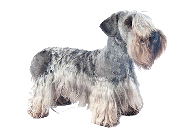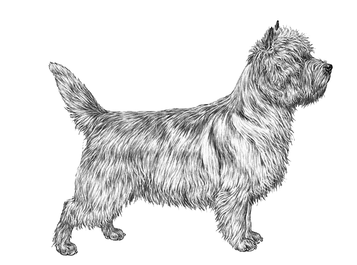 GENERAL APPEARANCE: A sturdy low-set dog, rather long in proportion to height with strong Terrier character, alertness, activity and soundness. Its untrimmed, harsh coat with definite ruff around the neck extending to the breastbone and its long strong head assist in developing its hard bitten, rugged appearance.